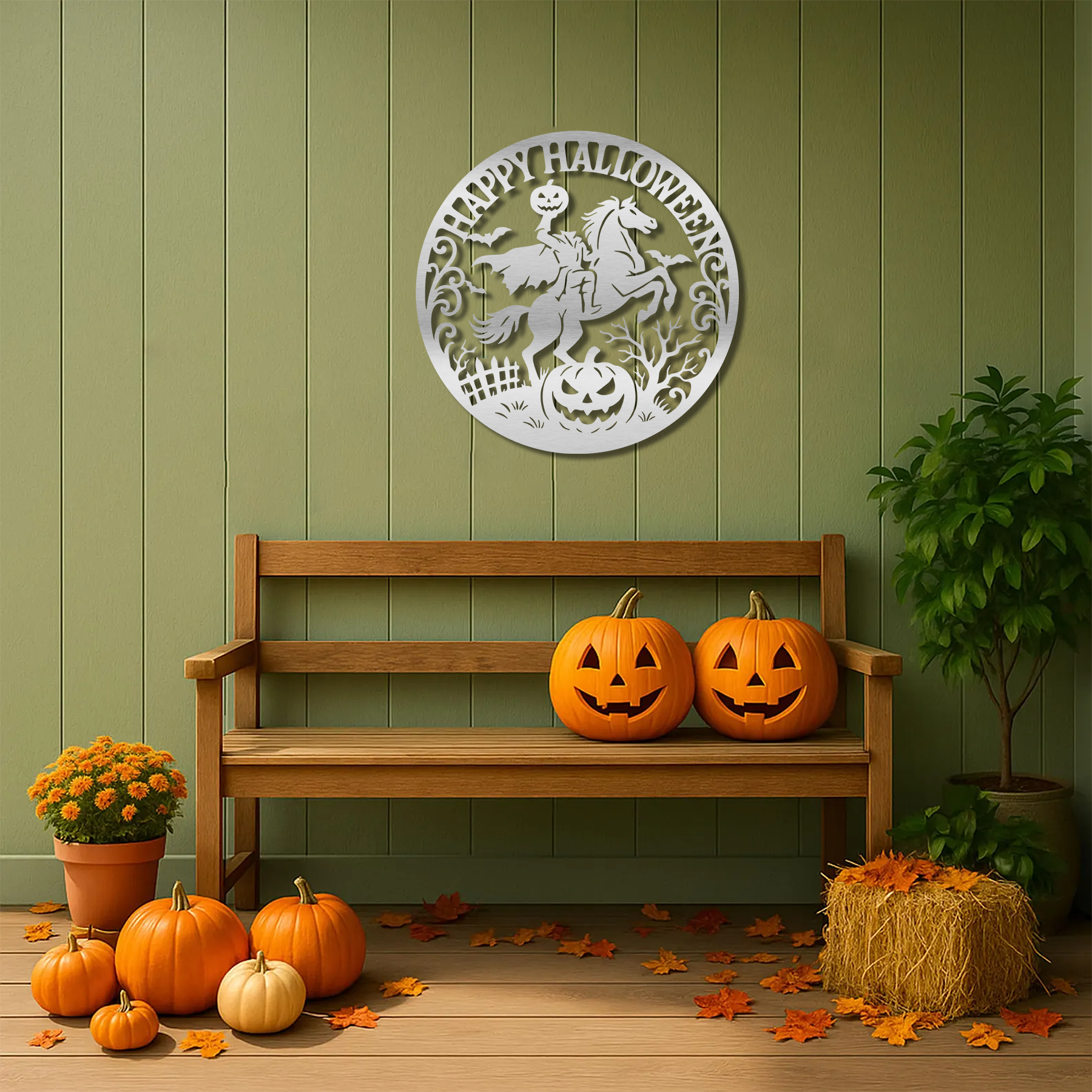 Bring the legend of the Headless Horseman galloping straight into your home with the Halloween Ride Wall Art, a chillingly detailed piece from our Spooky Halloween Collection. Featuring a haunting silhouette of a rider clutching his jack-o’-lantern head under a moonlit sky, this metal masterpiece captures the thrill, mystery, and mischief of All Hallows’ Eve in one bold design.