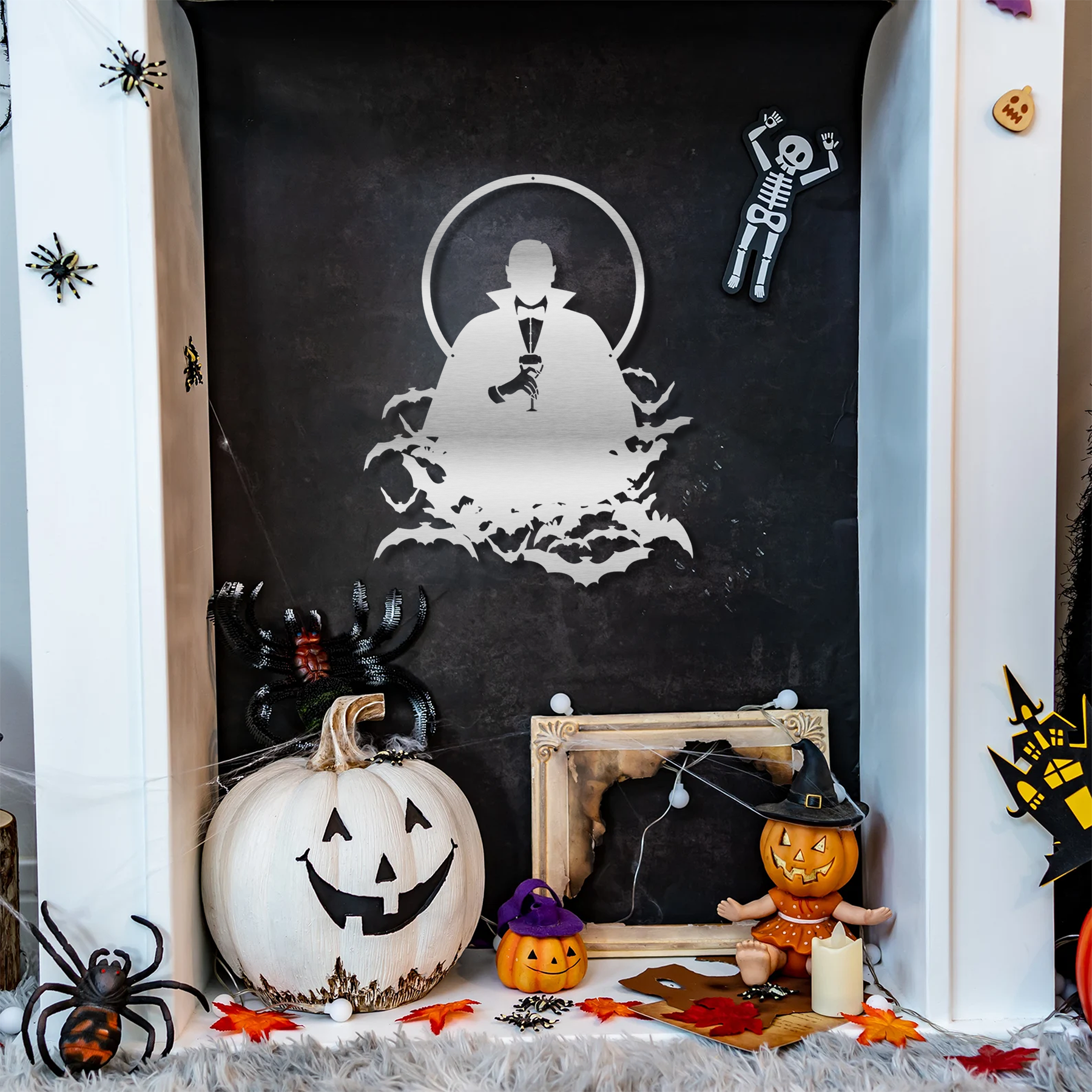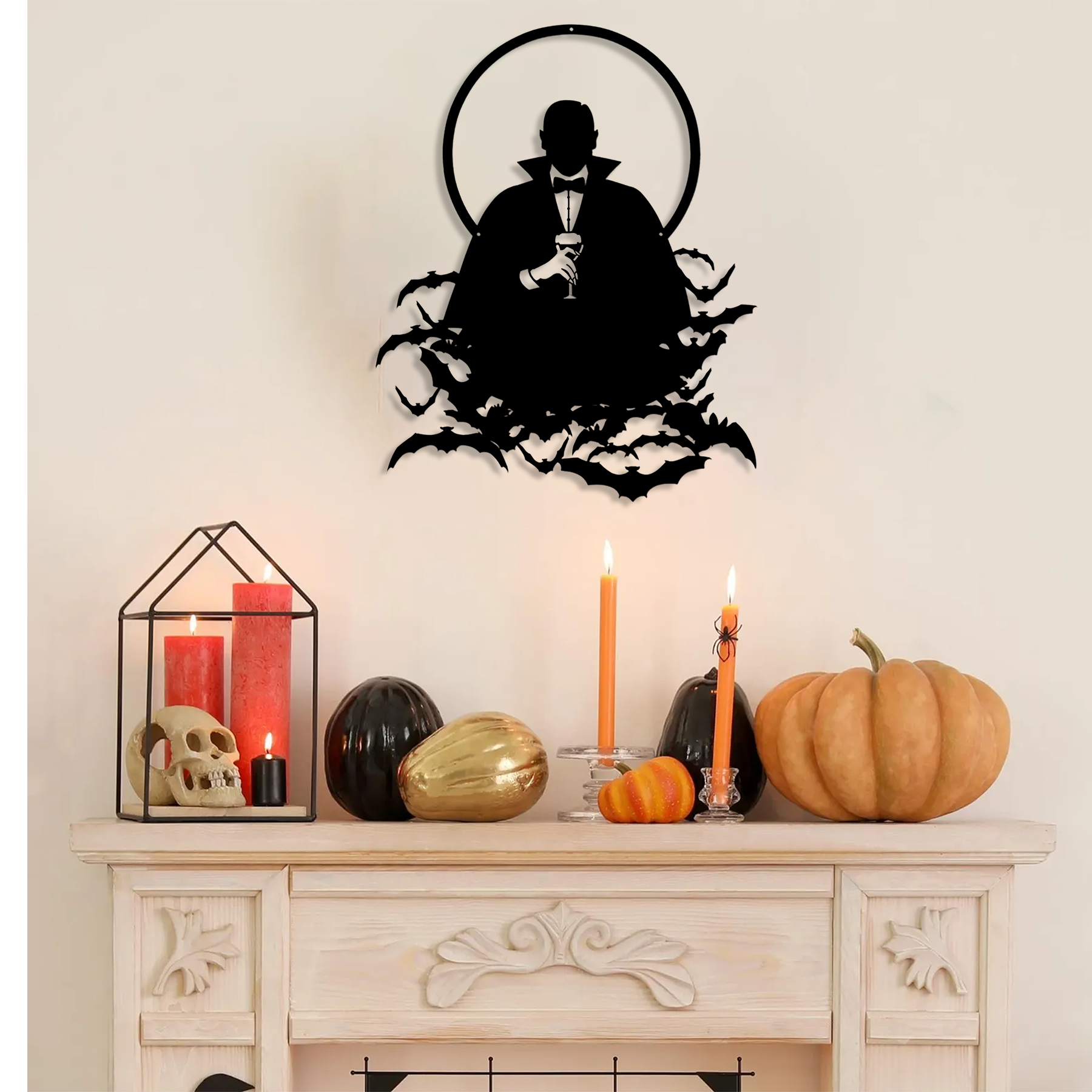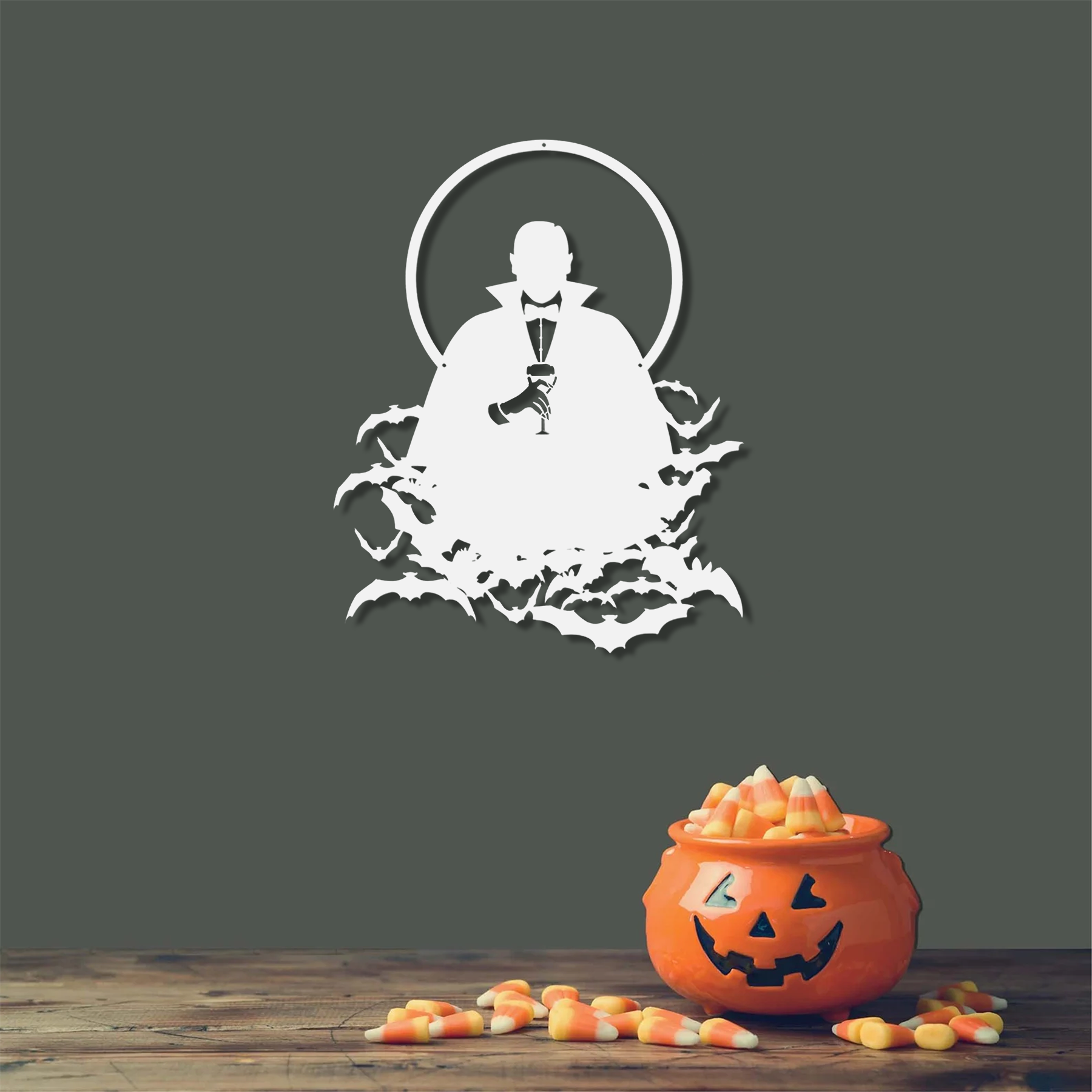 🩸 Vampiric Elegance – A striking silhouette of a refined vampire and his loyal bats brings timeless Halloween charm.