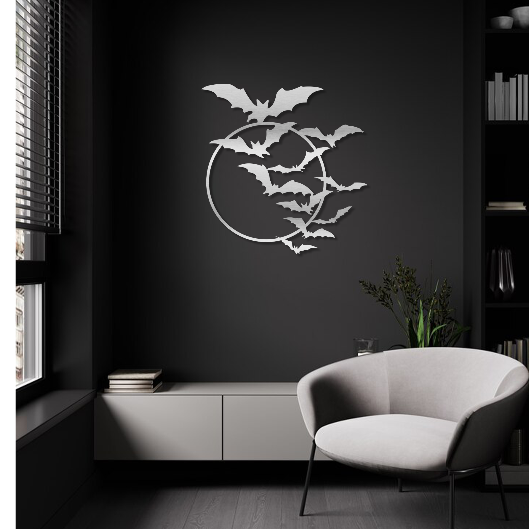 Bring an air of midnight mystery to your home with the Twilight Bats Wall Art, a striking piece from our Spooky Halloween Collection. Featuring a mesmerizing swarm of bats taking flight against the moon, this design perfectly captures the haunting beauty of Halloween twilight.